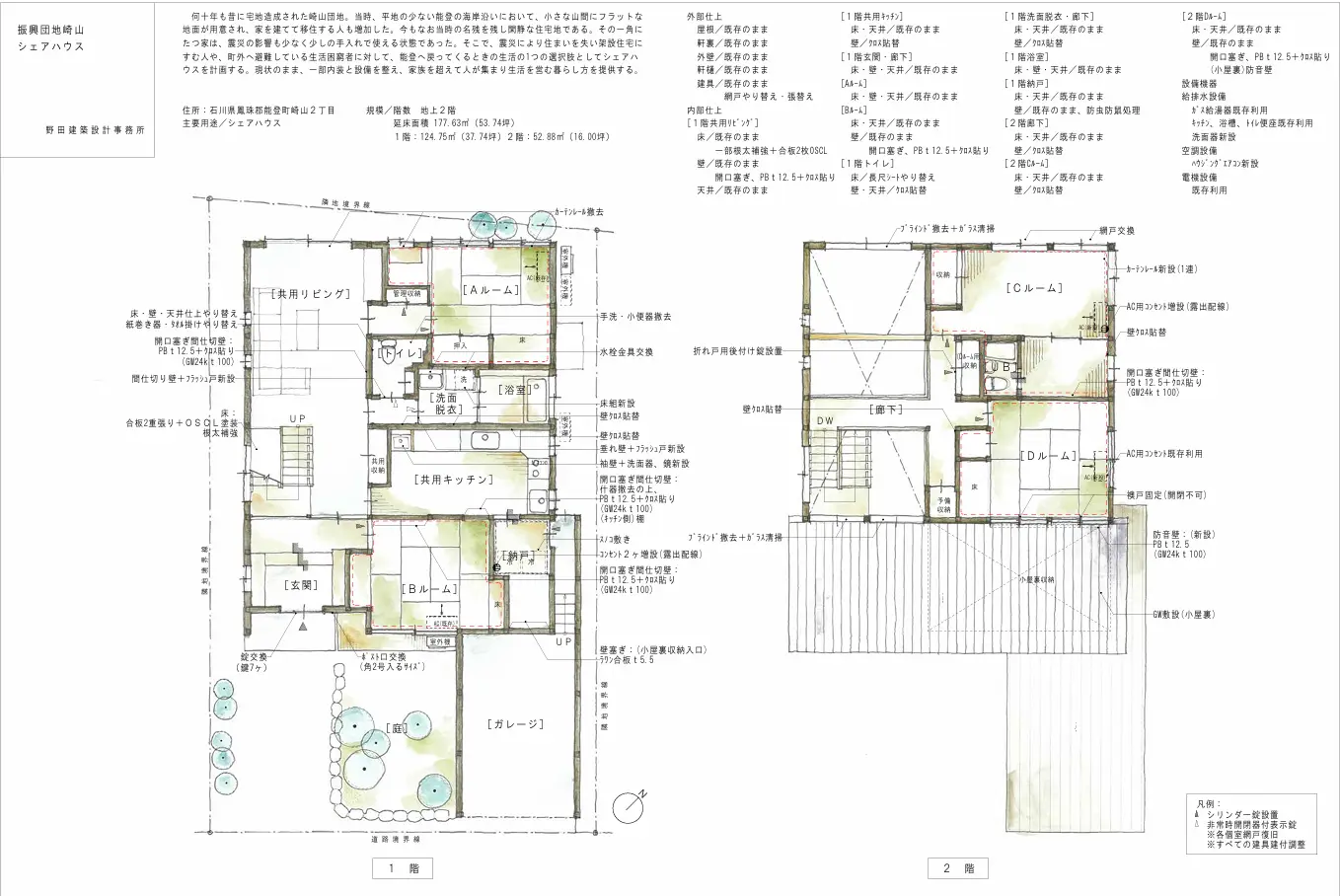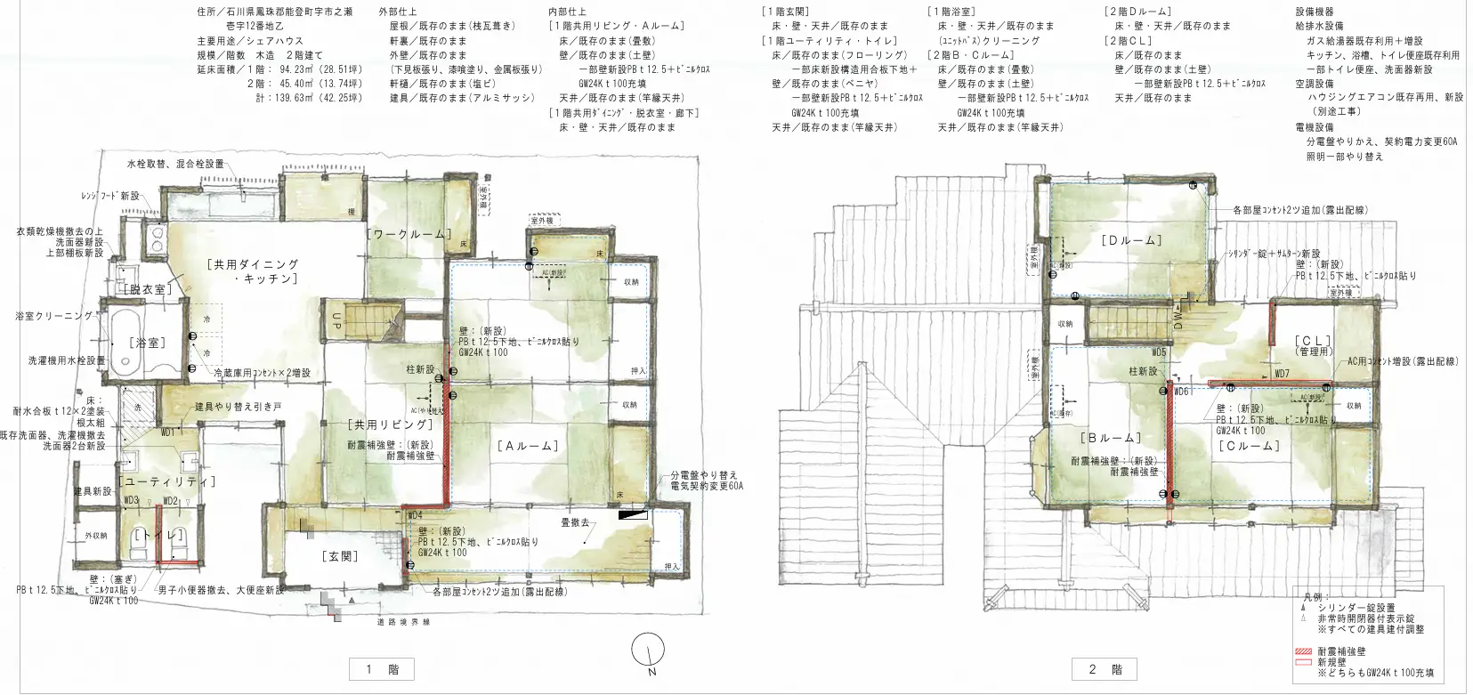 本事業を通じて、2件の物件改修(拠点物件・住居用物件)を実施したほか、5件の典型的な被災住宅について、修繕モデルプランおよび、モデルプランに基づいた修繕費用の試算などを行いました。